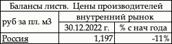 См. Инфографика «Цены производителей на лиственные Балансы»: БАЛАНСЫ ЛИСТВЕННЫЕ. ЦЕНЫ