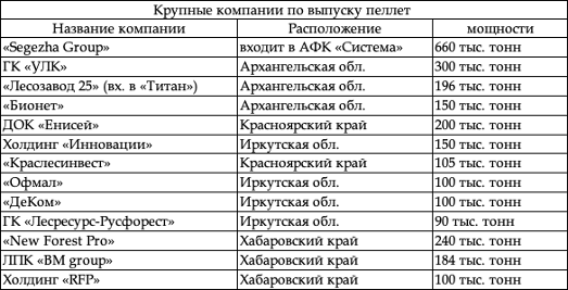 В число крупных лесопильных предприятий, выпускающих пеллеты