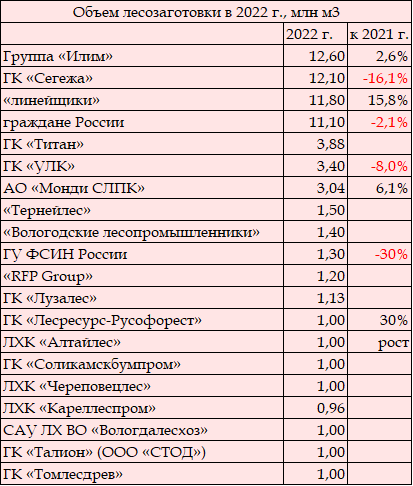 компании, как «Группа «Илим» и «Сегежа Групп». За прошлый год