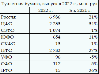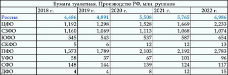 туалетной бумаги на 27%. За 2022 г. также увеличилось