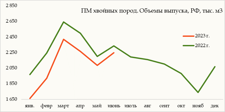 выпуск хвойных ПМ за полгода 2023 г. упал всего на