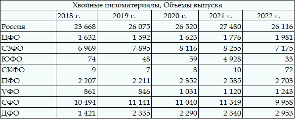 Таблица. Производство хвойных пиломатериалов в РФ по
