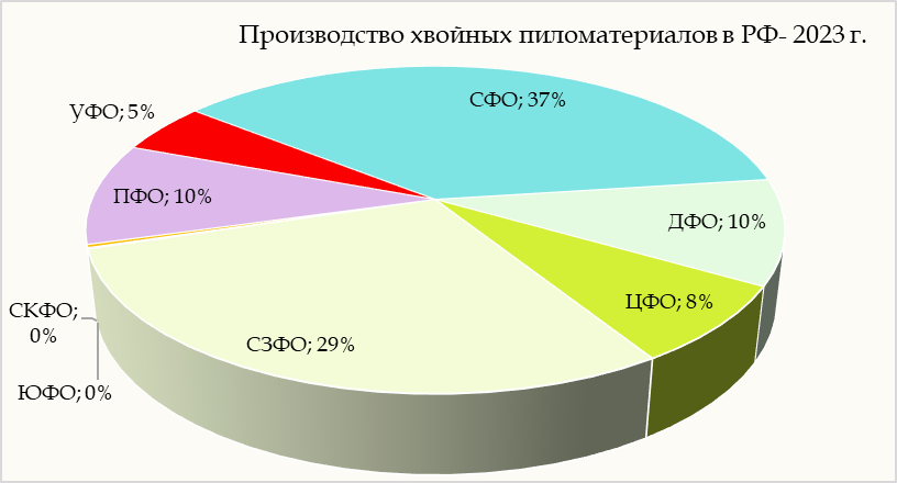 Доля выпуска хвойных пиломатериалов в 2023 г.