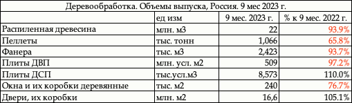 Деревообработка. Итоги 9 мес. 2023 г.