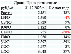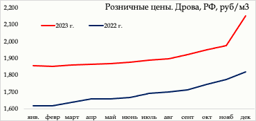 Итоги 2023 г. Розничные цены на Дрова за период с начала