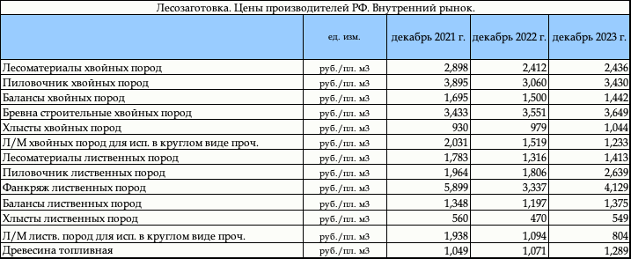 Таблица. Средние цены лесозаготовителей РФ на Л/М,