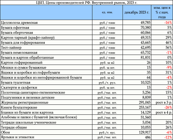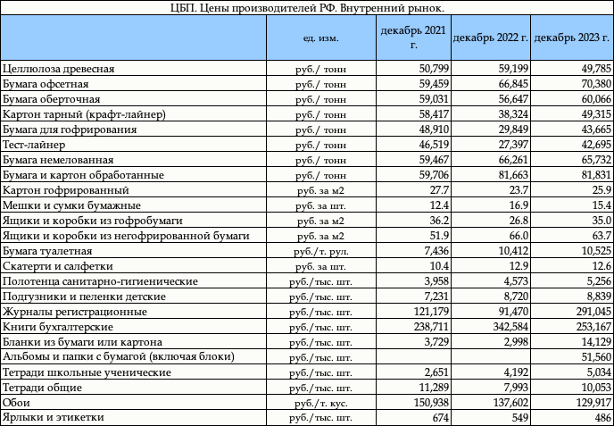 Цены производителей на целлюлозно-бумажную продукцию, 2023 г.