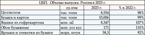 бумаги; в 2023 г. увеличились объёмы выпуска офсетной бумаги,