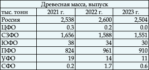 Таблица. Итоги выпуска древесной массы в 2021 г. - 2023