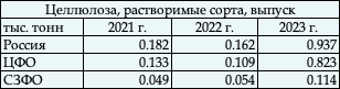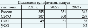 Таблица. Итоги выпуска сульфитной целлюлозы в 2021 г. - 2023