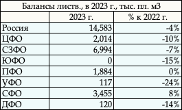 лесоматериалов России. Лидером по вывозке лиственных балансов
