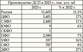 Производство ДСтП в целом по стране в 2023 г. выросло на