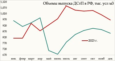 Представлена динамика по итогам 2023 г.: объёмы выпуска ДСтП