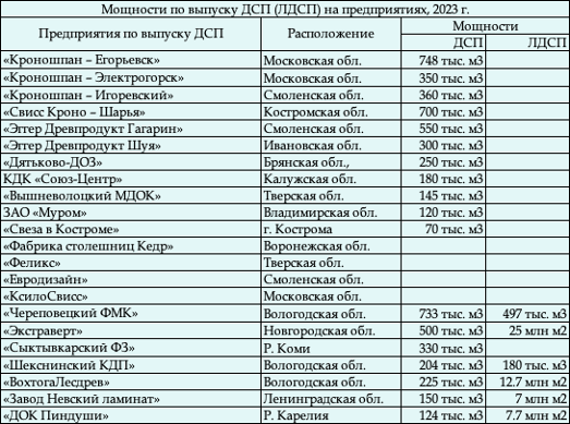 ДСП в ЦФО также налажено на таких предприятия, как КДК