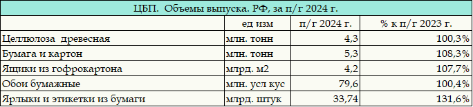 Таблица. Итоги выпуска продукции ЦБП за п/г 2024