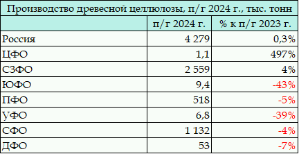 Таблица. Итоги выпуска древесной целлюлозы за п/г 2024