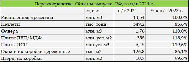 Деревообрабатывающая отрасль РФ, итоги п/г 2024 г.