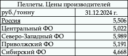 Таблица. Цены внутреннего рынка пеллет в 2024 г.