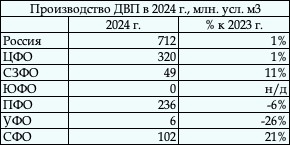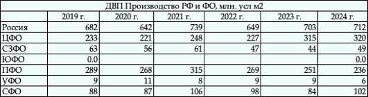 Таблица. Итоги 2024 г. по выпуску ДВП по ФО