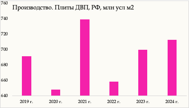 выпуска в 2022 г. По итогам 2024 г. объмы выпуска ДВП в