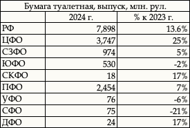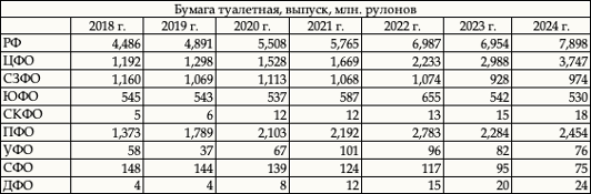 уровень выпуска туалетной бумаги по итогам 2024 г.