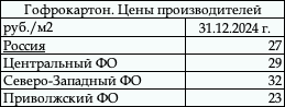 По состоянию на конец 2024 г. цены производителей для