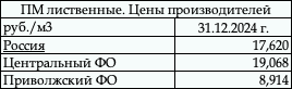 Таблица. Цены внутреннего рынка на ПМ лиственные по ФО,