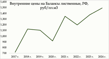 Диаграмма. Динамика внутренних цен на лиственные балансы за