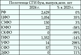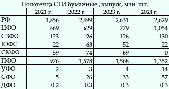 Производство СГИ в 2024 г. Рекордный выпуск бумажных салфеток!