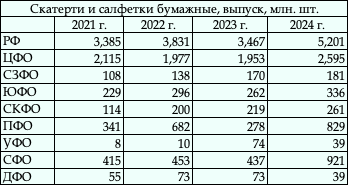 Таблица. Производство бумажных скатертей/салфеток в 2024