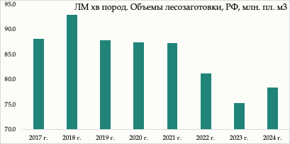 объёмы лесозаготовки древесины хвойных пород в 2024 г.