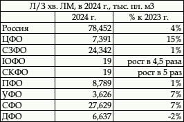 лесоматериалов в этом регионе за 2024 г. выросла на 1%; доля