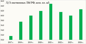 2024 г. объём лесозаготовки лиственных лесоматериалов в