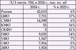 пиловочника, а в Центрольном ФО в 2024 г. лиственного