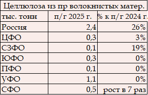 Таблица. Итоги выпуска целлюлозы из прочих растительных