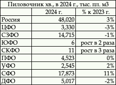 2024 г. вывозка хвойного пиловочника в стране выросла на 3%;