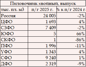 Таблица. Объёмы вывозки хвойного пиловочника за п/г 2025