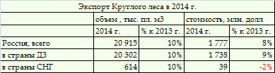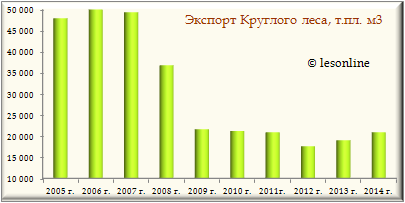 По итогам 2014 года российский экспорт лесоматериалов необработанных (код ТН ВЭД 4403) составил свыше 20 915 тыс. пл. м3. Отгрузки кругляка из России на внешние рынки растут второй год подряд. Так в 2014 году рост экспорта круглого леса составил 9,8%, годом ранее поставки выросли более чем на 7%.