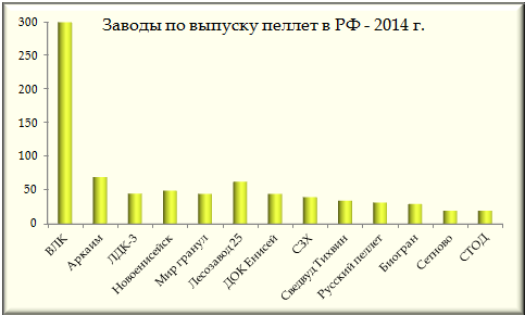 Производство топливных гранул в России набирает обороты. За последние пять лет количество компаний, занимающихся производством пеллет, выросло в разы. Сегодня лидером древесного пеллетного производства России является Северо-Западный федеральный округ, в котором по итогам 2014 года наибольшие объемы выпуска приходятся на производственные мощности деревообрабатывающих предприятий Ленинградской области — до 55% от общероссийского объема, суммарно – около 500 тыс. тонн. Напомним, что в 2011 году на территории СЗФО, и в частности в Ленинградской области заработали крупные производства – «Выборгская целлюлоза» (ныне ООО "ВЛК"), и шведский завод «Сведвуд-Тихвин». До ввода в строй пеллетной линии на "ВЛК" по выпуску отходов лесопиления в виде гранул лидировал Красноярский край (Сибирь). Напомним, что в Красноярском крае доминируют три крупные компании — созданные еще в 60-е годы Новоенисейский лесохимический комплекс (ЛХК), ДОК «Енисей» и ООО «Красслесснаб». Сегодня ведущим предприятием по выпуску древесных гранул выступает «Выборгская лесопромышленная корпорация» (г. Выборг, Ленобласть). На долю этой компании приходится почти 34% всего отечественного производства отходов деревообработки в гранульной форме из древесины 2014 года.