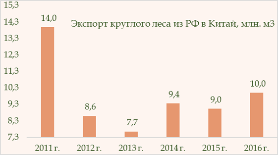 По итогам 2011 года показатели китайской торговли лесопродукцией на мировых рынках достигли пика. В тоже время экономика Китая в 2011 году характеризовалось усилением тенденции к инфляции и «перегреву» в отдельных сферах, в том числе в недвижимости, а также возросшими рисками в банковской системе. Начиная с 2012 г. зафиксировано замедление темпов роста китайской экономики. Китай сокращает импортные поставки деловой древесины – физические объемы экспорта круглого леса из России по итогам 2012 года падают почти на 35%, несмотря на снижение таможенных пошлин. Напомним, что в июле 2012 года состоялось вступление России в ВТО. Российские лесоэкспортеры в ожидании решений по таможенным пошлинам не спешили отгружать на экспорт деловую древесину. По условиям вступления в ВТО Правительство России было вынуждено снижать таможенные пошлины на вывоз хвойных необработанных лесоматериалов в рамках квот. С 2013 года таможенные пошлины на вывоз круглого леса хвойных пород установлены на уровне 12,7% от контрактной стоимости круглого леса из еловой и сосновой древесины. Квота по ели установлена на уровне 6,24 млн. м3, по сосне 16 млн. м3. Подробнее см http://www.lesonline.ru/news/?id=218383 Однако, несмотря на существенное снижение таможенных пошлин на вывоз круглого леса, отгрузки делового круглого леса на китайский рынок падают. Всего в 2013 году грузопотоки круглого леса из России в сравнении с уровнем 2012 года упали на 11%, составив 7,7 млн. пл. м3. К этому времени потребность Китая в лесоматериалах стала сокращаться по причине замедления темпов роста промышленности и строительства. Также необходимо учитывать, что на мировом рынке к этому времени увеличили объемы экспорта круглого леса такие страны, как США, Канада и, прежде всего, Новая Зеландия. С появлением на мировом рынке экспортеров эвкалиптовой древесины из Новой Зеландии, Россия, начиная с 2013 года, теряет лидирующие позиции среди поставщиков промышленного круглого леса в страны Азиатско-Тихоокеанского региона. На первое место на экспортном рынке необработанной древесины АТР вышла Новая Зеландия. Напомним, что в 2013 году объем экспорта круглого леса в Китай из Новой Зеландии увеличился на 33,4%, из России же, напротив, сократился на 11%. В условиях высокой конкуренции, возникшей на мировом рынке делового круглого леса, экспортеры в большей степени стали зависеть от деловой активности китайских предпринимателей. Так в 2014 году потребности в древесном сырье на китайском рынке вновь выросли. Напомним, что, начиная с 1 апреля 2014 года в провинция Китая полностью прекратилась коммерческая вырубка лесов в государственных лесхозах. Уже в первом квартале 2014 года китайские таможенники зарегистрировали резкий рост объёмов ввоза древесины из России через контрольно-пропускной пункт города Суйфэньхэ на юго-востоке провинции Хэйлунцзян. Эксперты объясняют рост объёмов ввоза из России круглого леса и распиленной древесины тем, что лесообрабатывающие предприятия провинции Хэйлунцзян столкнулись с дефицитом сырья. Российские экспортеры леса оживились - в результате по итогам 2014 года грузопотоки круглого леса из России на китайский рынок выросли почти на 22%, при этом средние таможенные цены упали на 3%. Следующий 2015 год ознаменовался обвалом внешнеторговых цен на мировом рынке лесоматериалов. Российские поставки в Китай за этот 