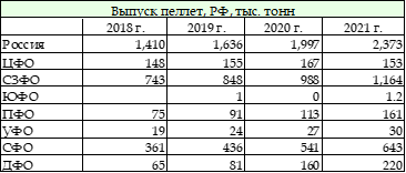 Уральского ФО приходится около двух процентов рынка пеллет.