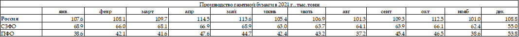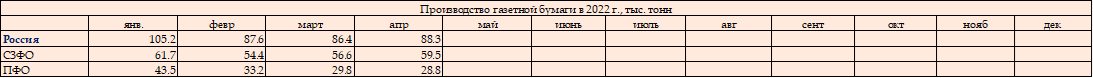 Таблица. Динамика выпуска «Газетной бумаги» в целом по России и по ФО