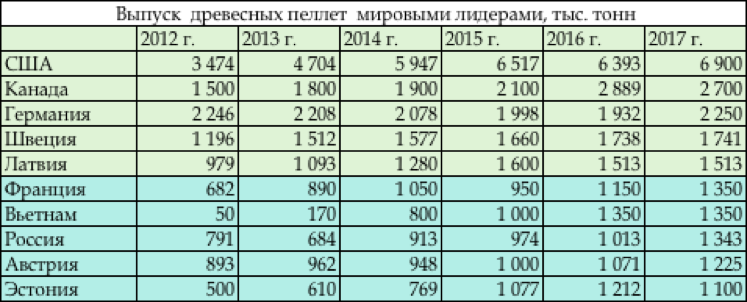 https://www.lesonline.ru/analitic/?cat_id=12&id=375694 Мировые лидеры по производству пеллет