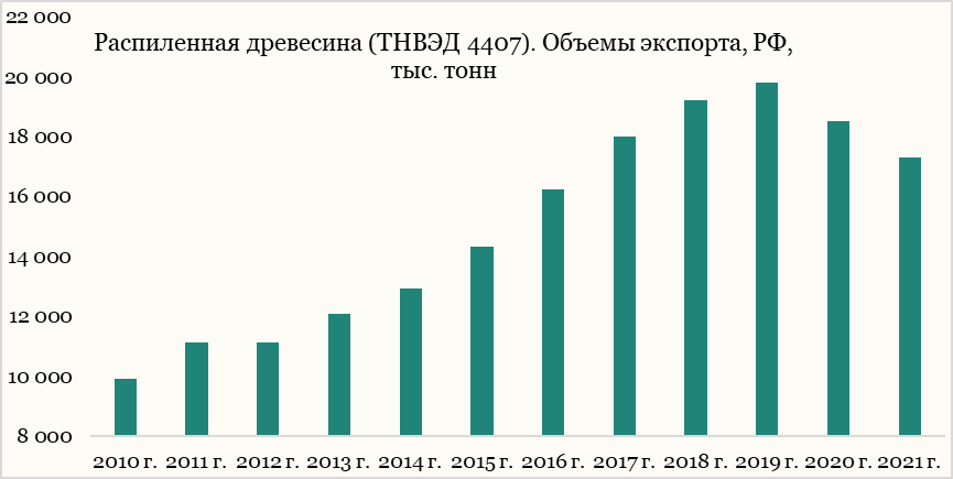 Последние десять лет суммарные продажи распиленной древесины на внешние рынки приносят наиболее высокий доход среди всех товарных групп. В совокупной стоимости экспортной продукции Леспрома РФ доля доходов от реализации пиломатериалов в 2017 год