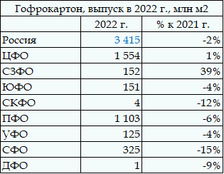 Таблица 2. Итоги 2022 г. по выпуску гофрокартона по ФО РФ в