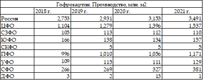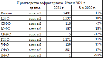 0,4%. В Дальневосточном ФО выпуск гофрокартона