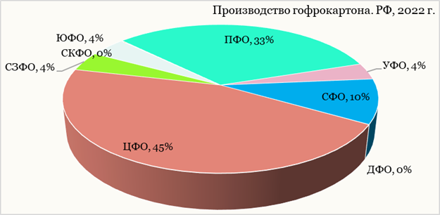 распределение выпуска гофрокартона по ФО РФ в 2022