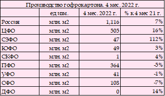 гофрированного картона по ФО РФ. 4 мес. 2022