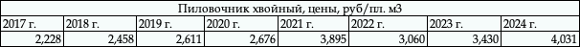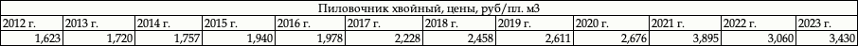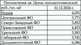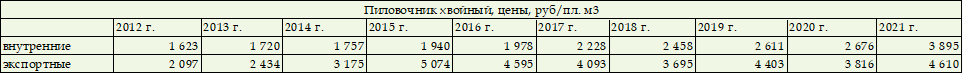Таблица. Цены производителей на хв. пиловочник - 2021
