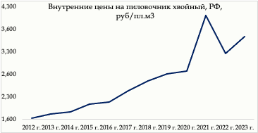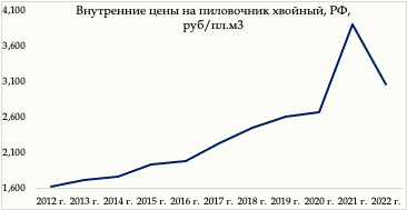 Диаграмма. Цены российских лесопильных предприятий